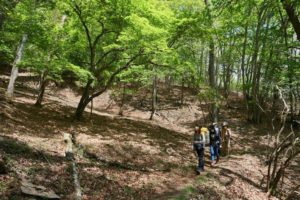 木漏れ日の中をハイキング.