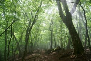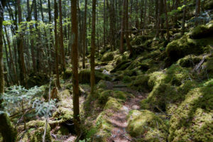 牛ノ寝通りは神秘的な森の様相。ゆるやかに下ります。