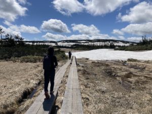 雪が残る高原を,八幡平頂上に向かって進みます.