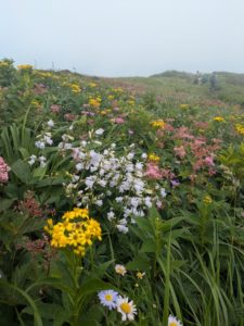 賑わいのある天神尾根から谷川岳に登り、肩の小屋に宿泊。翌日は仙ノ倉山までアップダウンの続く長い稜線を歩き、平標山を経て松手山コースで高山植物を楽しみ下山しました。