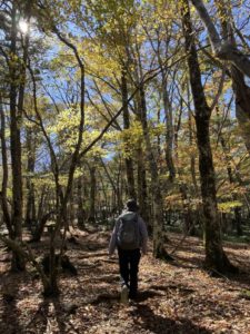 翌日は陽もさしてきて, 落ち葉を踏みしめながら快適な山行でした.