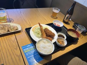 築地場外で休憩がてらランチ。マグロのぶつ切りも全部美味しい!