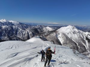 絶好の天気で稜線の雪の上を歩くのは,雲の上を歩いているような気分でした!