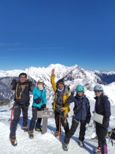 赤岳をバックに頂上記念写真