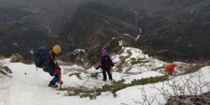 時折のぞく青空をみながら、高度感ある雪の阿弥陀岳を歩いてきました!