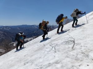 初日の登り. 急斜面を黙々と登りました.